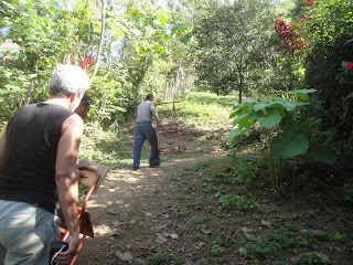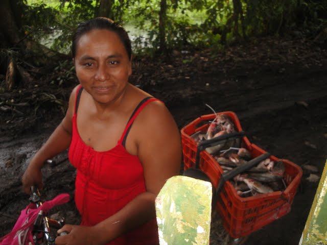 Plein de rencontres dans cette fameuse trail....notre voisine à Icacal qui , elle, fait la trail chaque jour pour aller vendre ces petits poissons et revenir avec des achats. Et ce , en vélo.