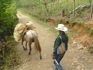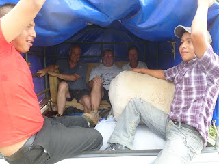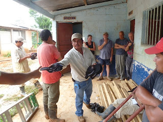 L'équipe de Byron amenant la pila à son dernier repos. En fait, si ce transport a été long et pénible, le travail de construction s'est déroulé à un rythme effréné....nous en sommes déjà à la peinture de la nouvelle école, voyez les photos à l'onglet Lote 6