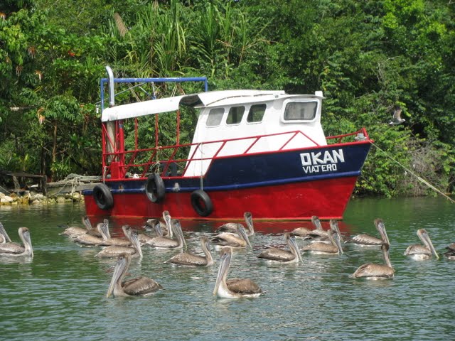 Comme tous les groupes précédents à Icacal, nous aussi nous avons organisé un aller-retour à Livingston en bateau!  Tout le monde à bord, même Pierre et Lise nous accompagnent dans cette belle aventure!