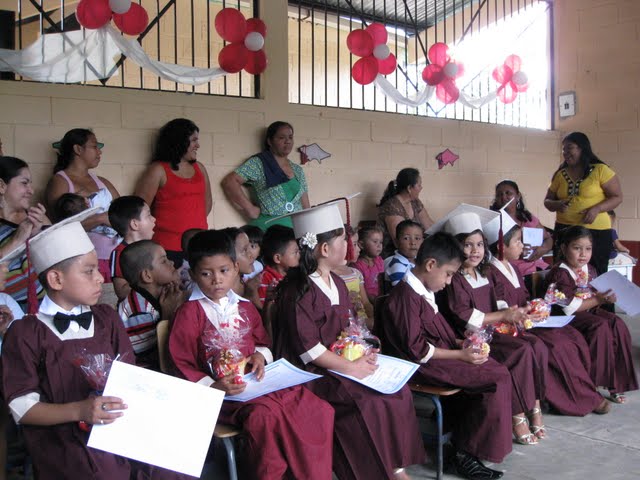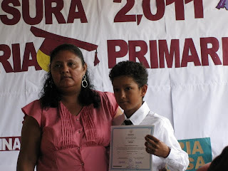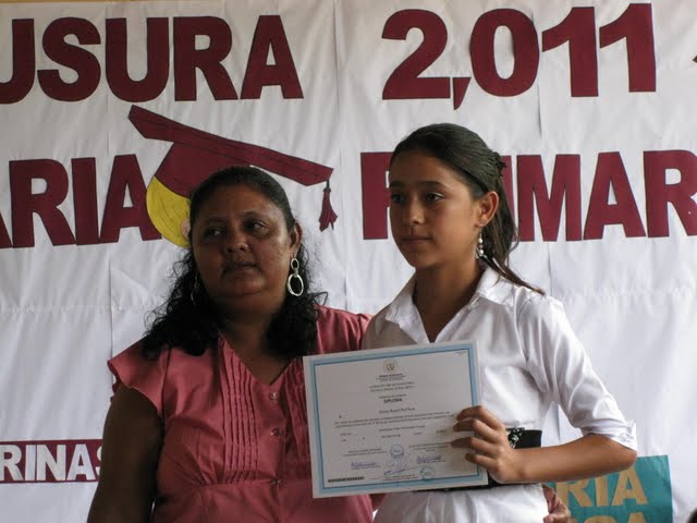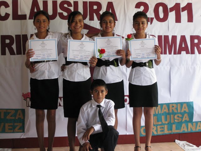 Ce samedi, nous étions conviés à la remise des diplômes des écoliers de La Pimienta. Très protocolaire et bien organisée, la cérémonie s'est déroulée dans la nouvelle école évidemment (voir onglet La Pimienta pour plus d'infos). Les 125 enfants ont tous reçu leur attestation, y compris les plus petits de la maternelle. 16 finissants de 6e année devront poursuivre leurs études secondaires dans le village voisin. On suit le dossier de près car c'est souvent un prétexte pour abandonner les études ($).