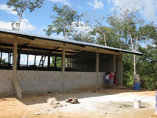 L'équipe de Byron était très fière de leur performance à Lote 6: à la fin de leur cinquième semaine de travail, le toit était installé. Il reste encore beaucoup de boulot mais on a bon espoir qu'au début janvier, El Grupo Icacal pourra compléter la finition pour que l'année scolaire ne soit pas trop retardée. Début des classes vers le 15 janvier si rien ne s'y oppose.