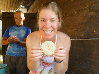 Moment fort de notre journée : la fabrication de tortillas! Échec pour Pierre : ça colle!