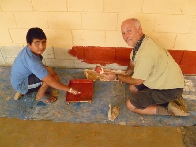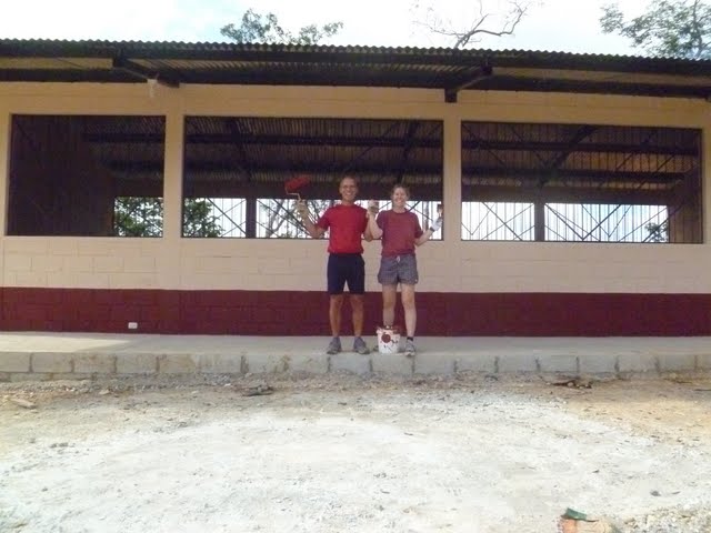 Photo très officielle devant l'école Lote 6, celle où nous avons le plus travaillé, la peinture ROUGE qui donne la touche finale= FIERTÉ !