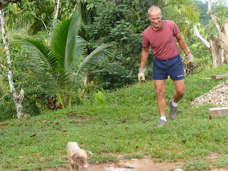 À l'école Nueva Vista, après avoir fait de la céramique avec Mario-Charles, nous avons procédé à la remise officielle des chaussures de Jean (merci Jean!) à un père de famille qui n'en possédait pas.