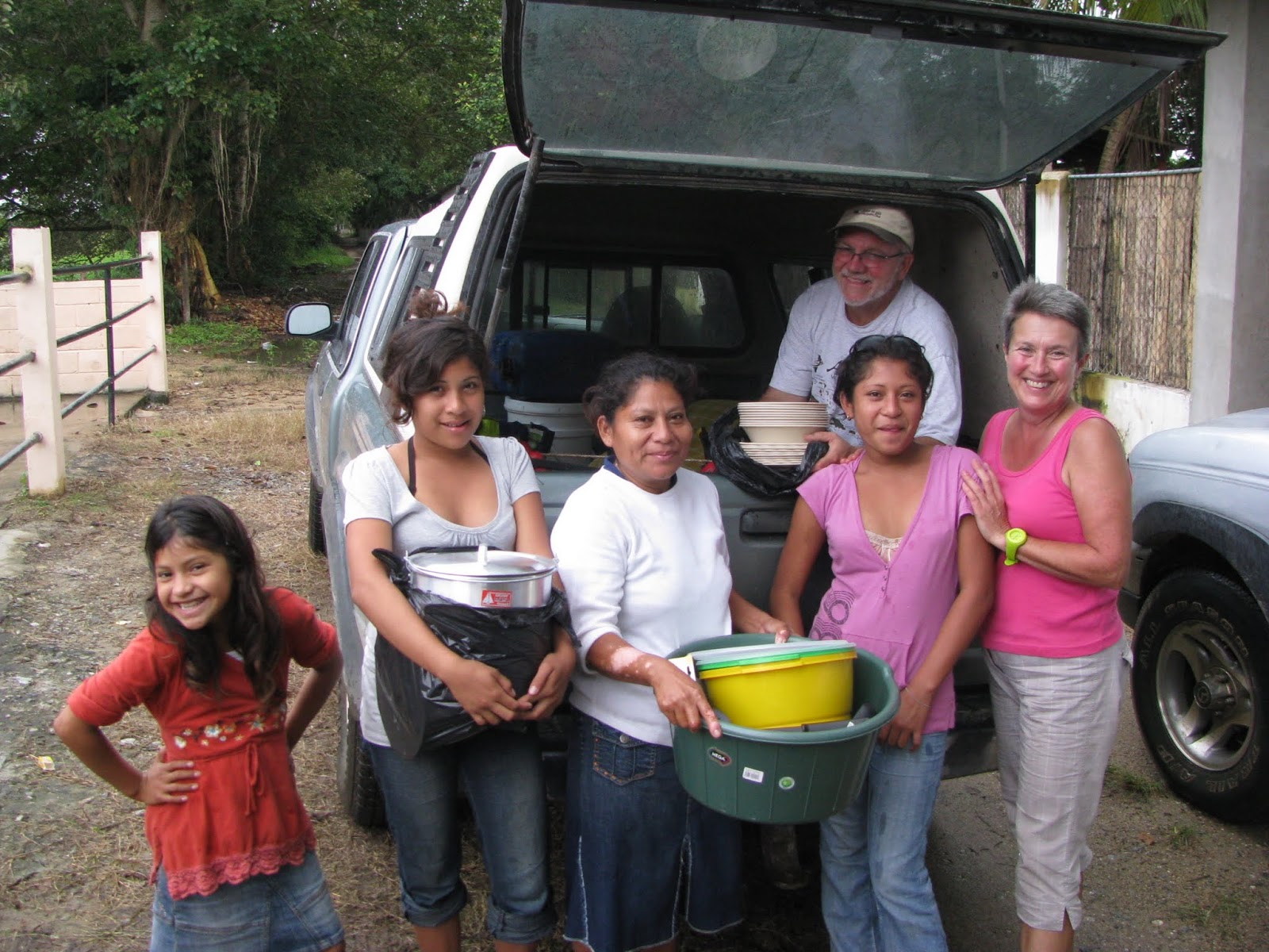 Louise et Pierre, après avoir fait l'épicerie d'urgence ont tenu à offrir les choses de premières nécessités comme la vaisselle et les chaudrons disparus dans l'incendie. La famille en est très reconnaissante et vous offre une bonne fin de voyage en Amérique Centrale.