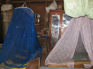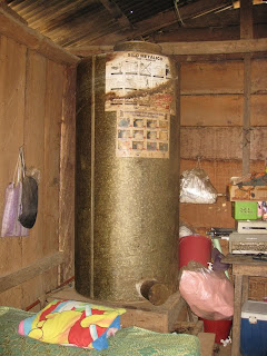 La partie fermée de la maison est simplement constituée d’une série de lits et d’une armoire. Les lits sont protégés des insectes par des rideaux. Au fond, il y a un silo dans lequel ils conservent les grains de maïs, à l’abri de l’humidité et des rongeurs. La conservation peut durer jusqu’à une année sans problème. Noemi et Isaï étaient bien fiers de poser devant leurs lits. Noemi avait un peu de difficulté à cadrer les photos mais nous nous sommes bien amusés.