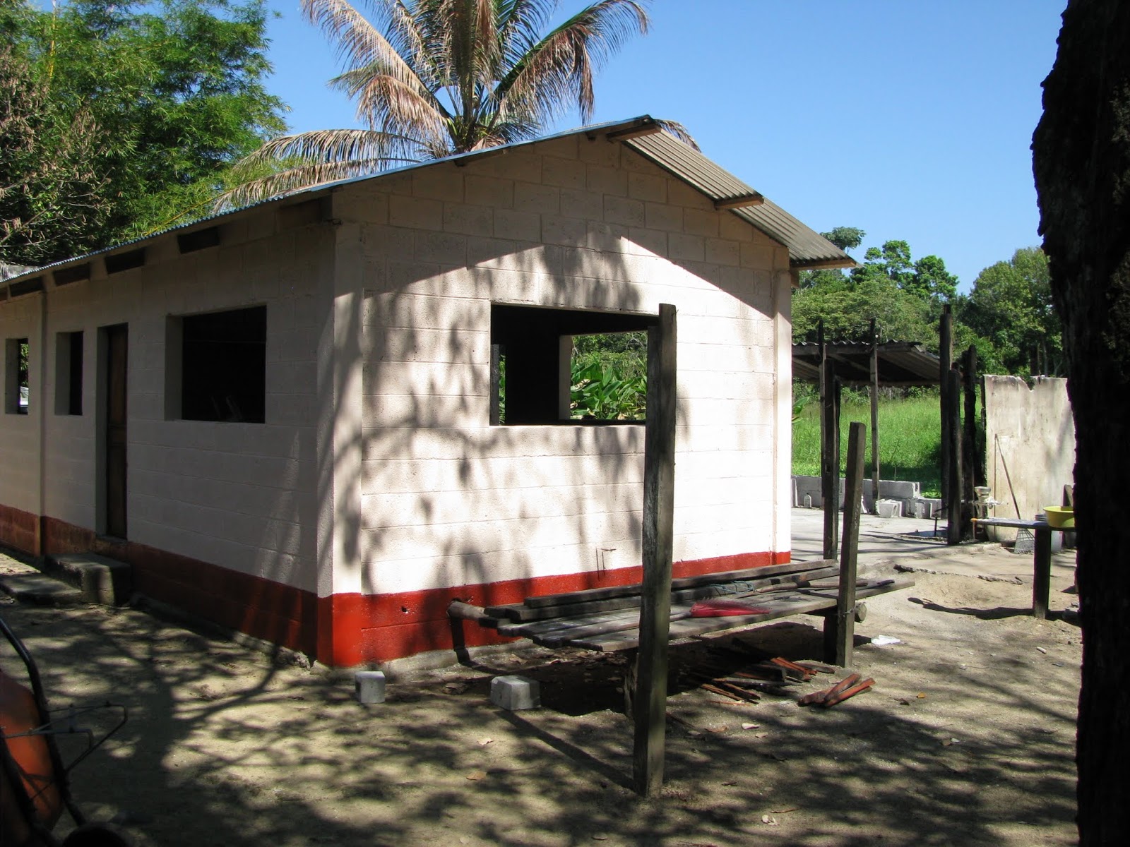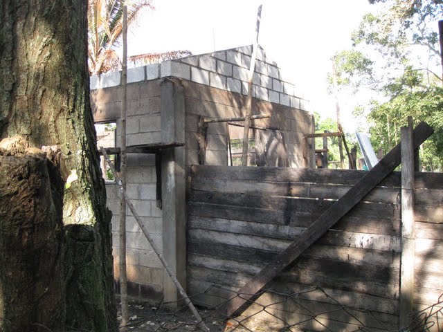 Il y a 5 ans, ils ont commencé à bâtir leur maison en « dur » c’est-à-dire en blocs de béton derrière la petite maison de bois actuelle. Comme on peut voir sur les photos, il y a encore quelques années de travail avant de compléter cette maison.