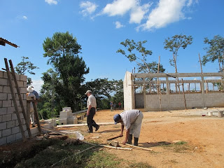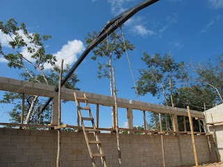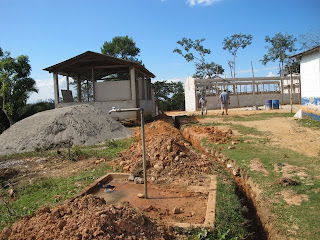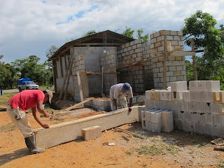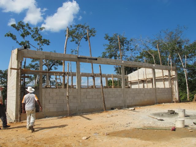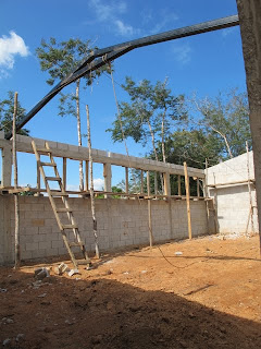 03 Décembre, tout avance très bien sur le chantier et le toit sera installé dès que la génératrice reprendra du service. En attendant , l'équipe de Byron complétera le bloc sanitaire et la nouvelle cuisine.