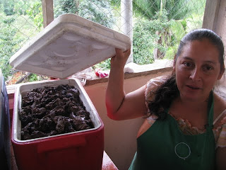 La traditionnelle "vaca" offerte par un riche propriétaire du village réduite en portions qui feront le délice de tous les villageois. Un peu raide pour les dentiers québécois.