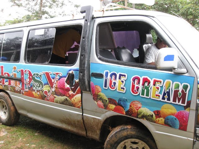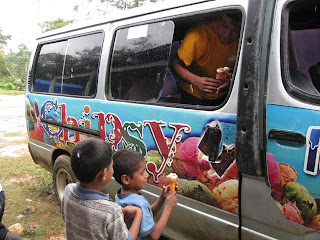 Un sprint de sablage pour la photo et surtout pour l'arrivée du vendeur de crème glacée.