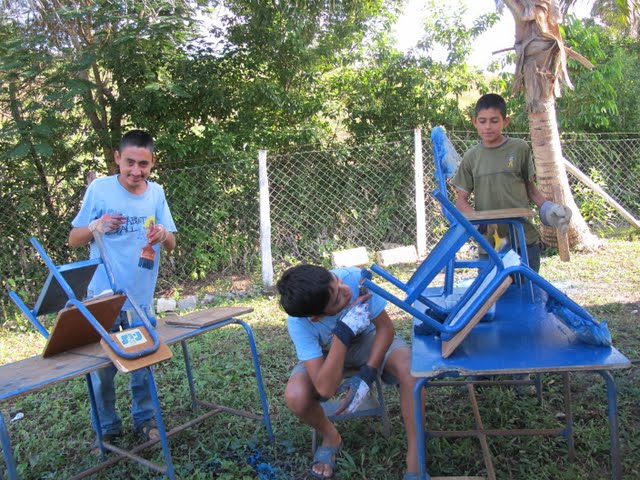 L'école de Tierra Blanca nous avait donné l'impression l'an dernier d'un site qui avait bien besoin d'amour. Depuis lundi, elle reçoit une formidable dose d'adrénaline grâce aux villageois qui participent à l'opération en compagnie de l'équipe de Byron et d'une première équipe de québécois. Le choc est plutôt drastique et le résultat ne saurait tarder considérant l'enthousiasme de tous.